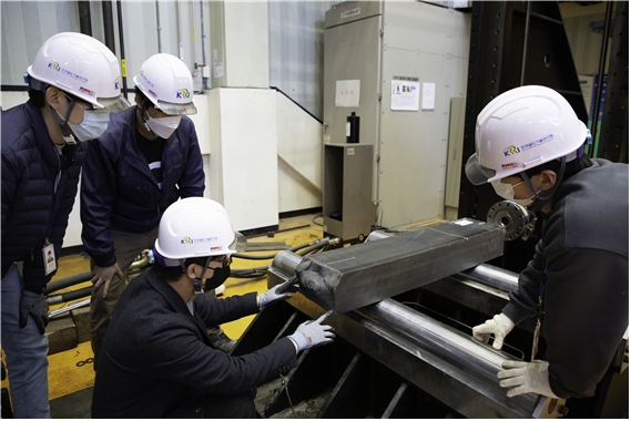 경기 의왕 철도기술연구원에서 친환경 플라스틱 침목에 대한 구조시험을 진행하고 있다. / 한국철도기술연구원 제공